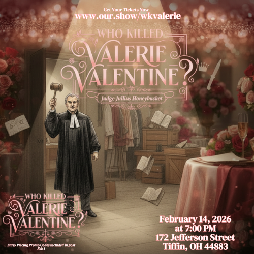 Celebrate Valentine’s Day with an evening of romance, mystery, and interactive theater. When beauty queen Valerie Valentine is found dead after the Miss Theater World pageant, the audience becomes the jury in a hilarious, clue-filled courtroom drama.